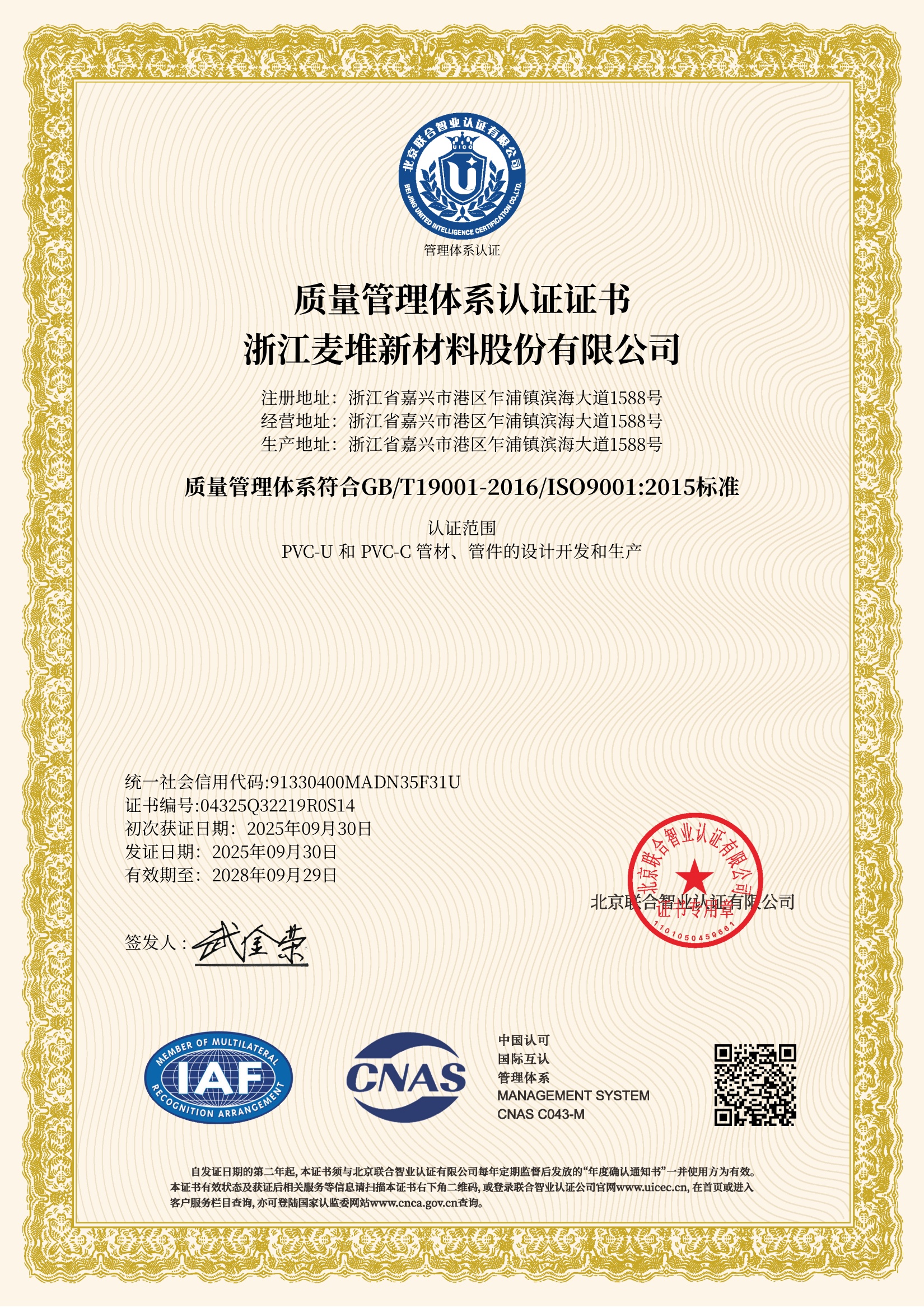 浙江麦堆硬聚氯乙烯(PVC-U)管材20口径
