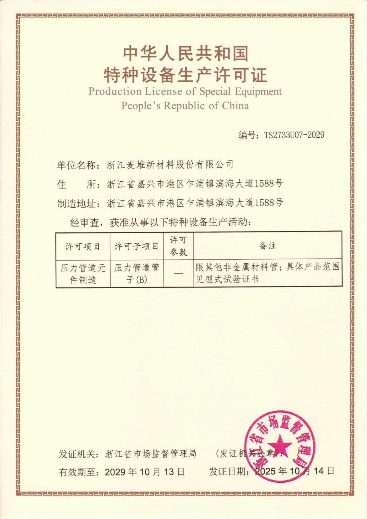0139卫批许可-麦堆牌给水用氯化聚氯乙烯(PVC)